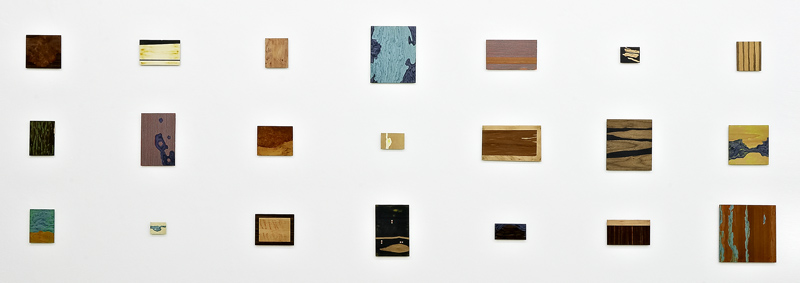 Der geschlossene Raum der Sprache (2009) / veneer, steel plates, acrylic paint, magnets / installation approx. 1,50 x 4,00 m
